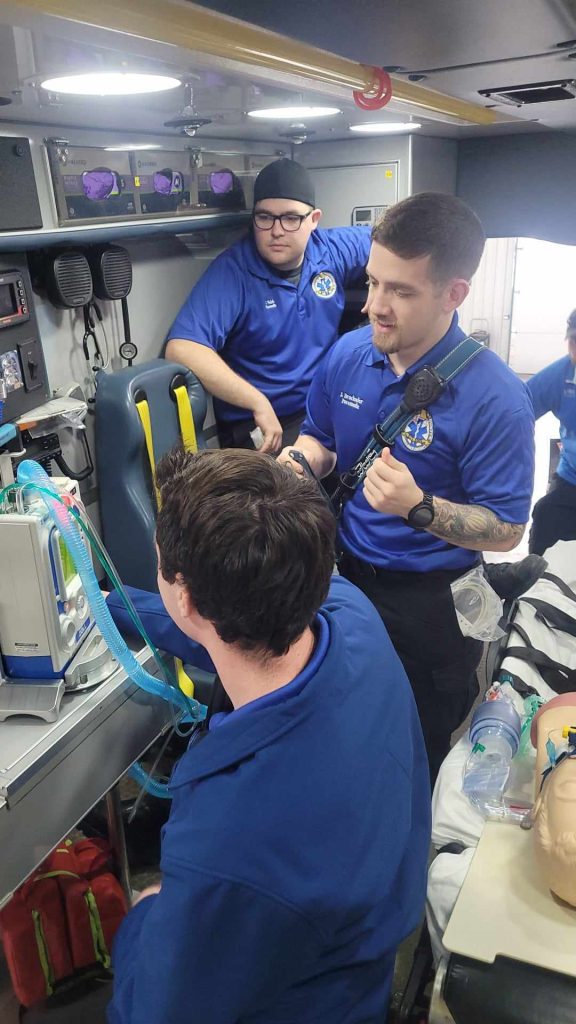 Our convenient shift-based program allows students to pick which day they come to class each week. The program is innovative and uses multiple teaching styles to reach out to the student. Not only do we provide in-person lecture, we also use video-based learning to help students visualize concepts. When we move to the lab portion of the course, students are able to utilize skills rooms that are designed to mimic their future surroundings. For example, students can start a call in the nursing home room, move the patient to the mock ambulance, 2 doors down, and then transfer the patient to the ER room. This hands-on practical application pushes our program ahead of the competition. The training center also has its own dedicated ambulance so students can practice skills in a moving truck.